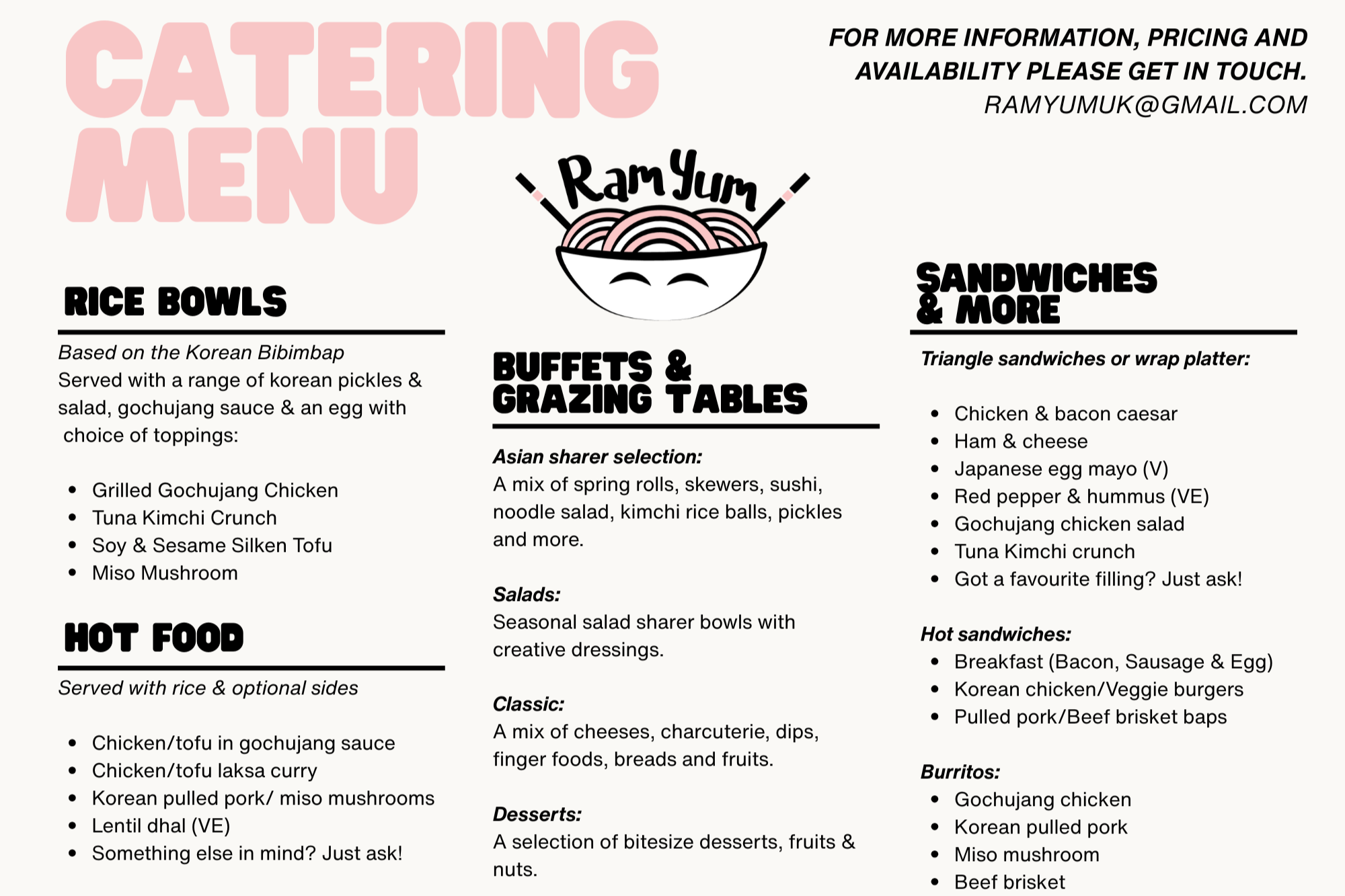 We can create a menu that suits you, your budget and your event just get in touch to chat with us!